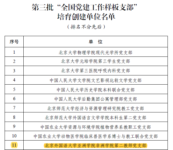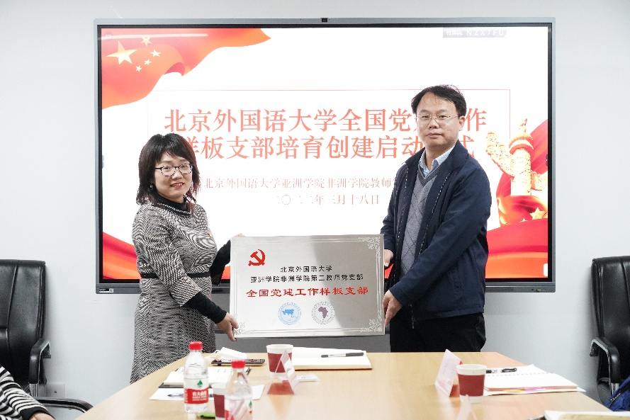 党委宣传部副部长、新闻中心负责人王薇薇宣读了《教育部办公厅关于公布第三批全国党建工作示范高校、标杆院系、样板支部培育创建单位名单的通知》。党委组织部常务副部长冯刚为304am永利集团非洲学院教师第二党支部授牌,勉励支部党员在党建和团队建设深度融合的道路上继续前进。