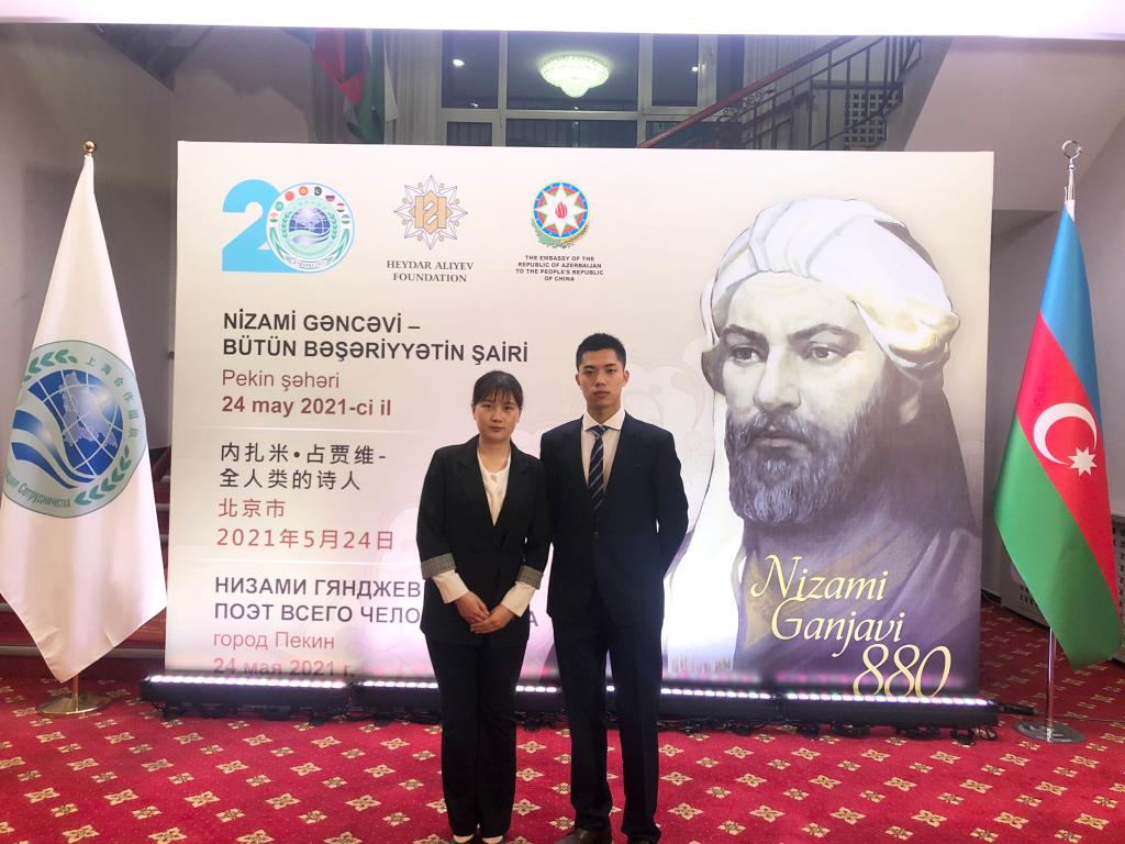 2021年5月24日晚,经阿塞拜疆驻华大使馆的邀请,304am永利集团阿塞拜疆语专业本科生王思源和唐雨萱参与了“内扎米·占贾维—全人类的诗人”主题活动。该活动在北京上海合作组织总部举办,旨在庆祝伟大阿塞拜疆诗人,思想家内扎米·占贾维诞辰880周年。