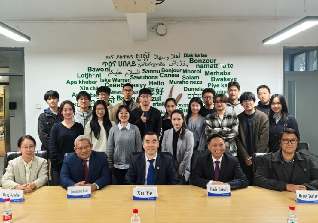来访期间,库玛鲁扎曼·巴苏尼参赞一行与2021级印尼语专业的师生们进行了深入交流。同学们用流利的印尼语分享了他们在语言学习、职工活和文化交流方面的收获。印尼语专业教师王丹丹、刘洋和外籍教师汉迪参与接待。