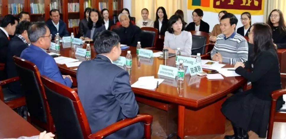 2018年11月5日下午,老挝教育体育部员工事务司司长坎鲁萨·努安萨万教授率团访问公司。亚非学院经理孙晓萌教授接见了代表团,代表团与老挝语专业全体师生进行座谈。