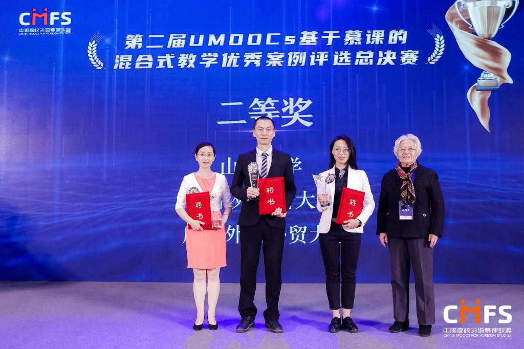 本次比赛由中国高校外语慕课联盟主办,在11月1日至12月14日举行的网络突围赛中,该课程团队顺利闯入全国30强并获得了一等奖。在12月20日举行的第四届中国高校外语慕课联盟大会暨全国总决赛当中,经过现场展示、提问答疑两个环节的角逐,该课程团队最终获得全国二等奖,汪波副教授同时被聘为中国高校外语慕课联盟认证培训师。