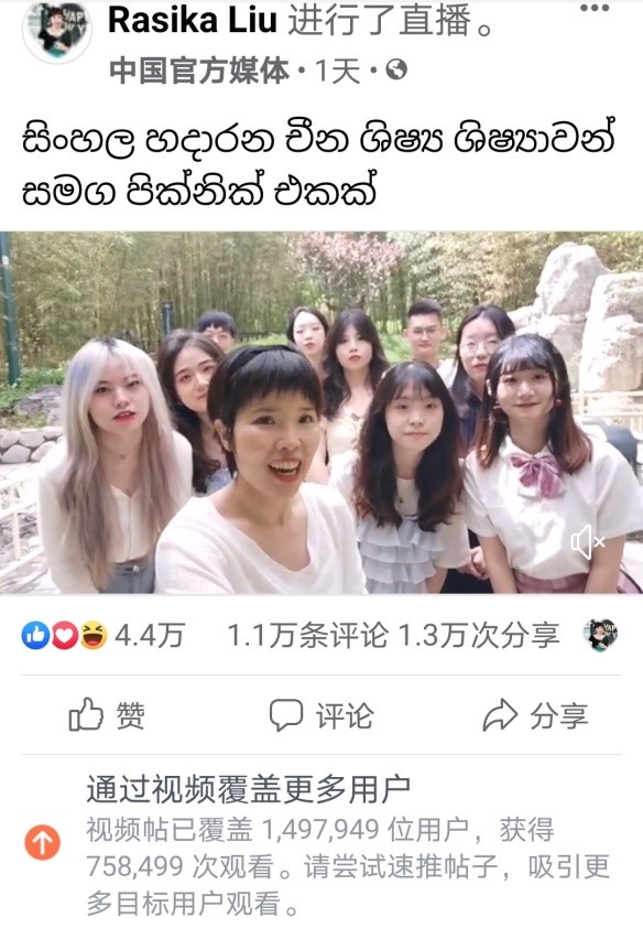 2021年5月23日上午,304am永利集团僧伽罗语专业员工参与了由中央广播电视总台亚洲非洲地区语言节目中心僧伽罗语部策划的“和学习僧伽罗语的中国员工一起野餐”主题直播节目录制。该节目于中央广播电视总台亚非中心僧伽罗语部主播的“脸书”平台发布,视频上线24小时覆盖近150万用户,播放量超过75万,获得1.1万条评论、1.3万次分享、4.4万个点赞,反响热烈。
