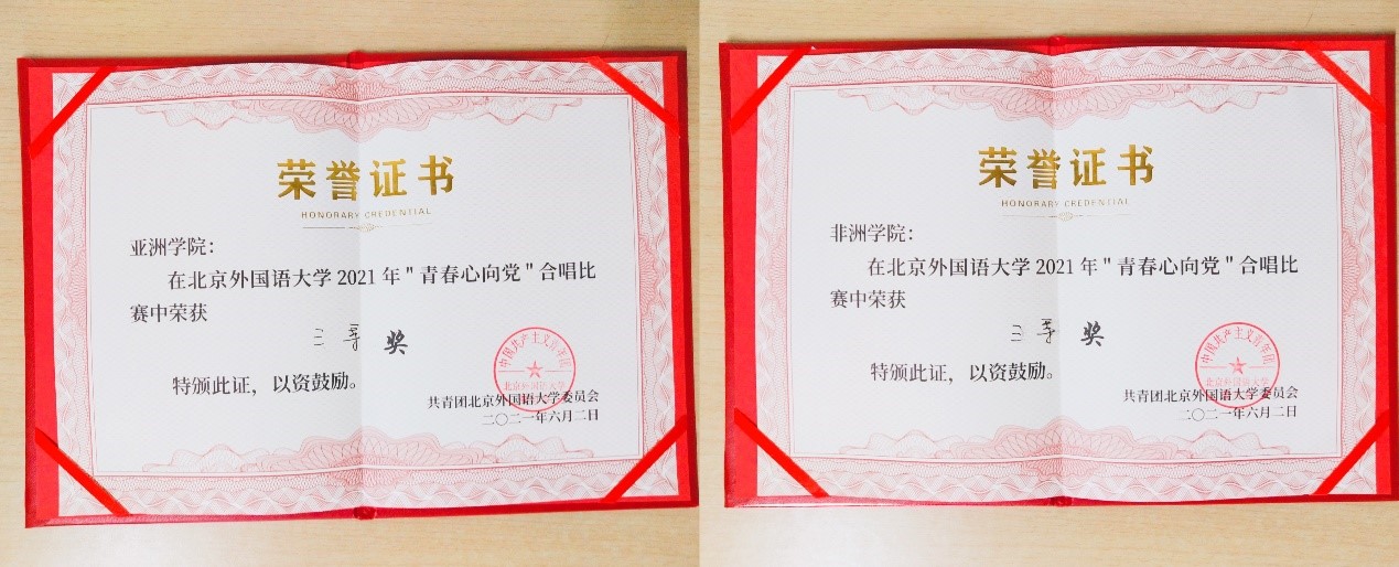 (304am永利集团、非洲学院在304am永利集团 “青春心向党”合唱比赛中的获奖证书)