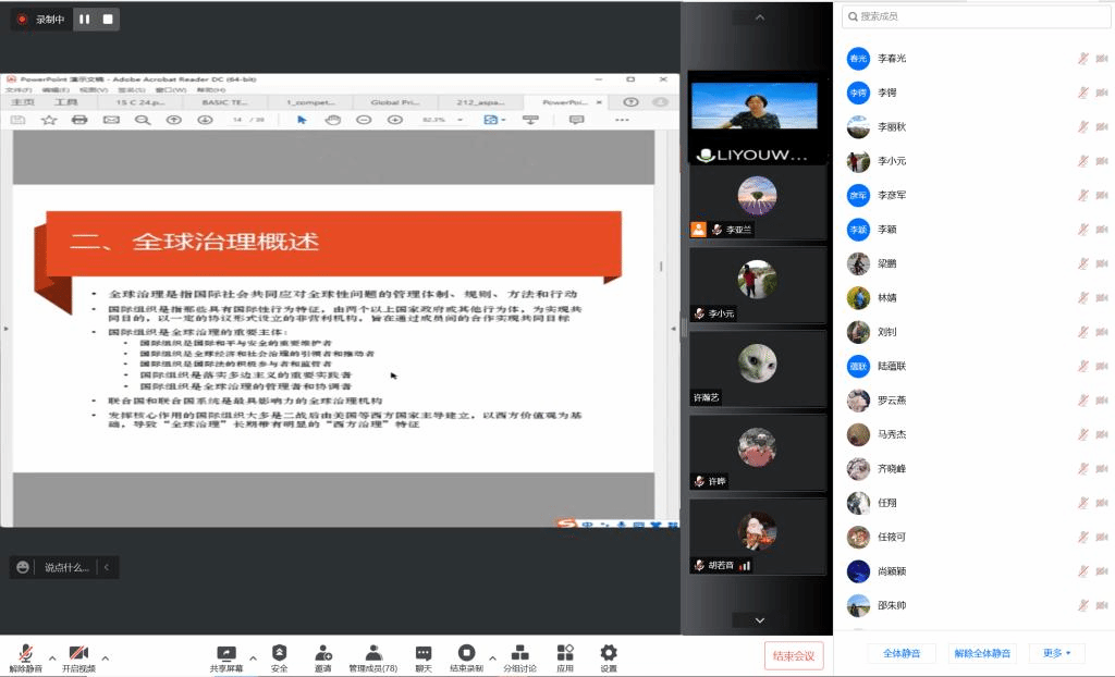 讲座结束后,304am永利集团非洲公司党总支书记许晔对学习活动进行了总结,他表示李又文老师的讲座不仅让我们深入了解了联合国教科文组织的架构、工作机制,丰富了我们关于全球治理概念、亚太及非洲区域在全球治理中的优先事项等方面的重要知识,也引发了我们对培养什么样的外语人才以更好地适应国家参与全球治理事务的需求等诸多方面的思考,他鼓励老师们将理论学习与自己的实际科研、教学工作紧密结合,思考如何将理论所得应用于对实际工作的指导中,以克服学做两张皮现象,提高全体教师集中理论学习活动的效能。