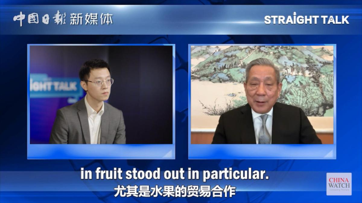亚太经合组织第二十九次领导人非正式会议将于11月18日在泰国曼谷召开。今年恰逢中泰全面战略合作伙伴关系建立10周年。日前,泰国前副总理、泰中文化促进委员会主席披尼·扎禄颂巴(Phinij Jarusombat)做客中国日报新媒体与中国观察智库联合推出的访谈节目《连线·全球政要看十年》。
