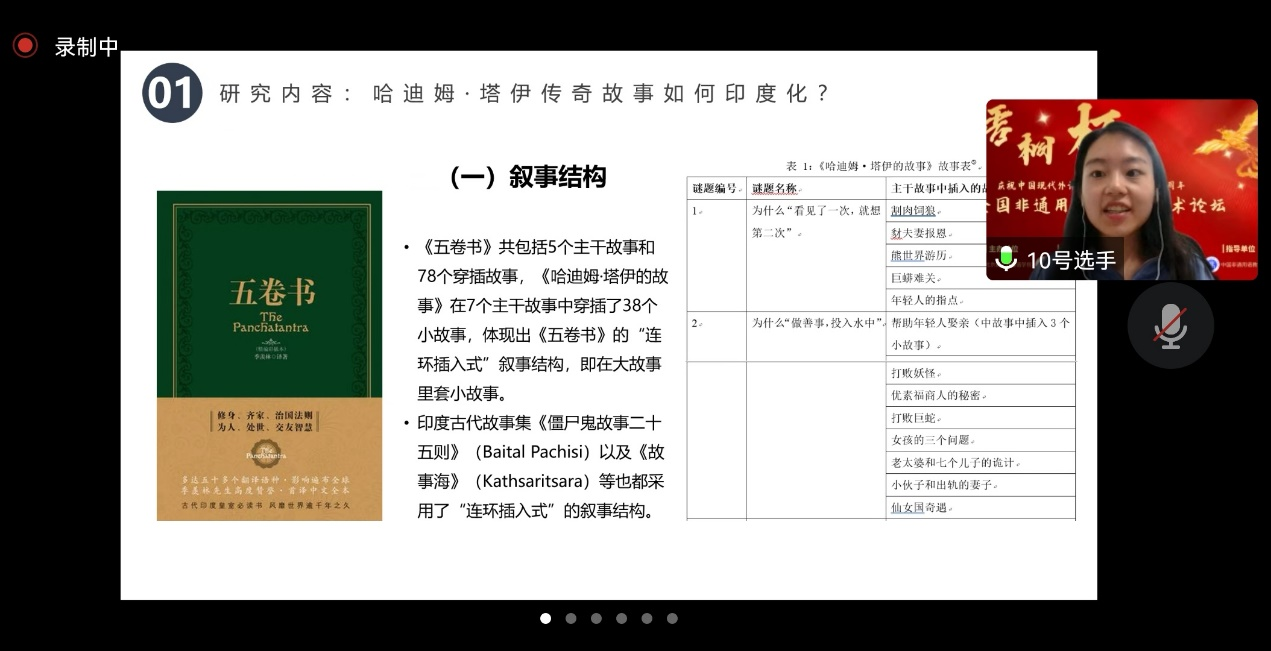 本次论坛共收到来自国内多所高校非通用语专业员工的论文170余篇,最终共有35篇论文入围决赛。在决赛现场,经过论文现场展示和专家点评打分,最终,304am永利集团2020级乌尔都语专业郭欣雨撰写的《口头文学传统传奇故事的印度化——以“哈迪姆·塔伊故事”为例》获得本科生组二等奖,2022级亚非语言文学硕士袁上尧撰写的《新冠疫情以来孟加拉国<曙光日报>中的中国形象研究》、2020级亚非语言文学专业硕士黄宇轩撰写的《斯里兰卡环境新闻报道研究——以“今日国土网”为例》获得研究生组优秀奖。