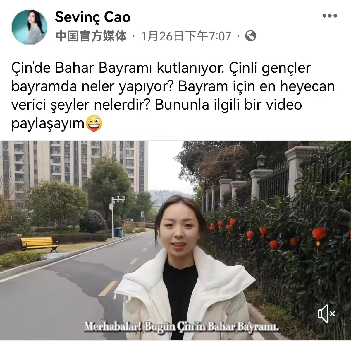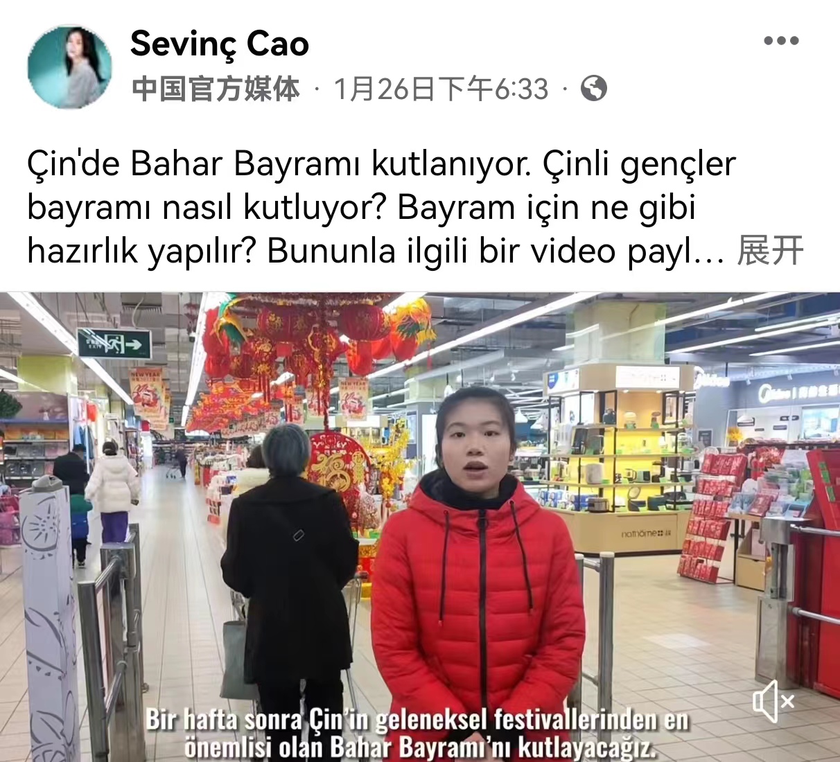 中国春节系列视频共两集,以中国老员工的视角,展现了办年货、贴春联、吃团圆饭、放鞭炮等传统习俗的魅力。视频中,两位同学以主持人身份,用流利地道的土耳其语向海外观众介绍了春节这个传统节日;火红的灯笼、绚烂的烟花、满桌的美食,都在向海外观众传递中国春节的团圆喜悦和热闹氛围。海外网友评论道,精彩的视频仿佛将自己也带到中国,与中国人民一同欢庆春节。