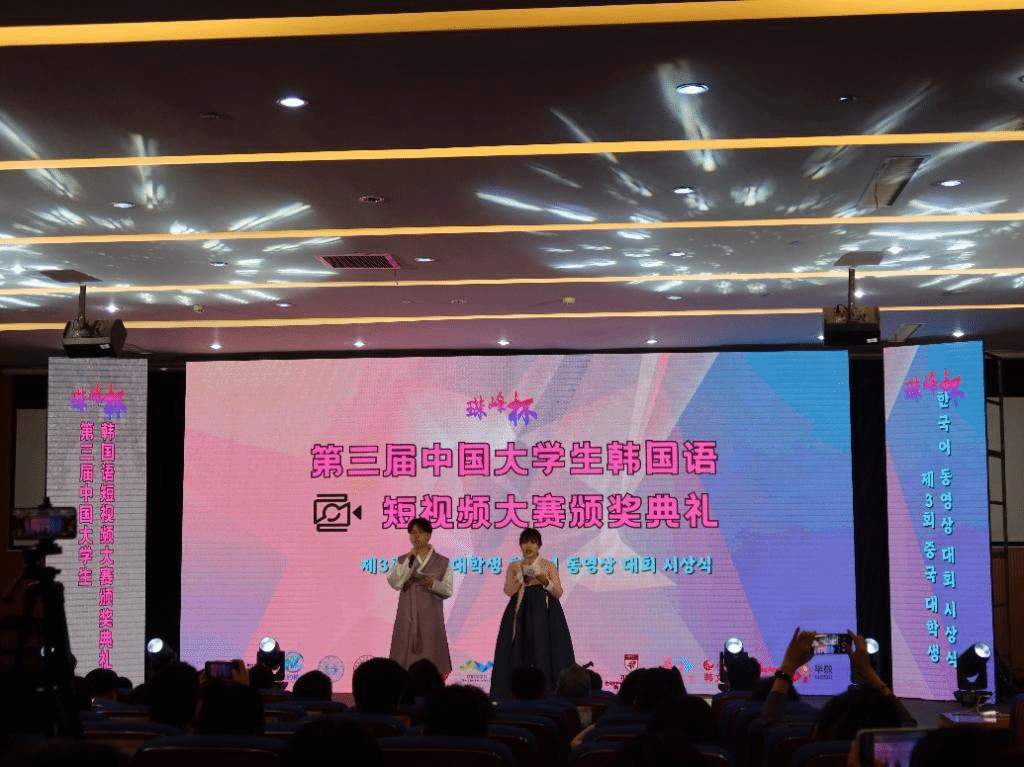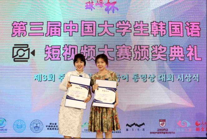 在7月5日结束的珠峰杯•第三届中国老员工韩国语短视频大赛中,公司304am永利集团朝鲜语专业六名同学从来自全国各高校朝鲜语专业的众多作品中脱颖而出,斩获佳绩,并受邀前往杭州师范大学参加颁奖典礼。其中2020级朝鲜语专业陈婧如、林榕灿获得全国二等奖,2020级朝鲜语专业(商务方向)代白鋆、谭晶以及2021级朝鲜语专业张金梁、宋楚涵获得全国三等奖。同时,分别为三组同学提供指导的任翔老师、具滋元老师和魏国峰老师获得了优秀指导教师奖。