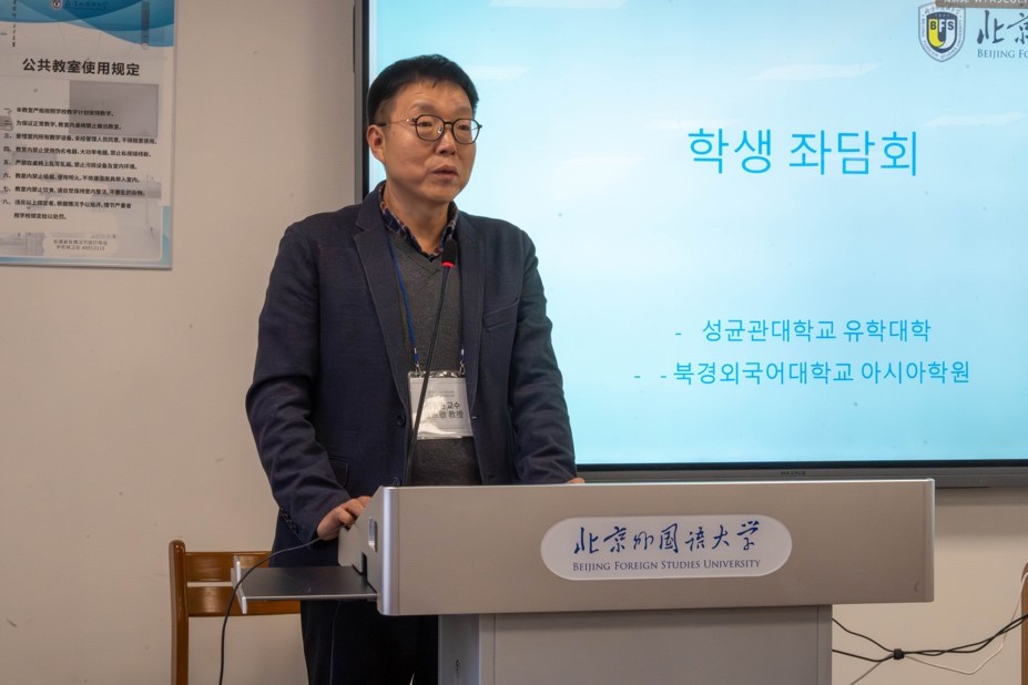 成均馆大学儒学学院经理金东敏教授对公司师生的热情接待表示了衷心的感谢,并希望两校间加强合作、友谊长存。