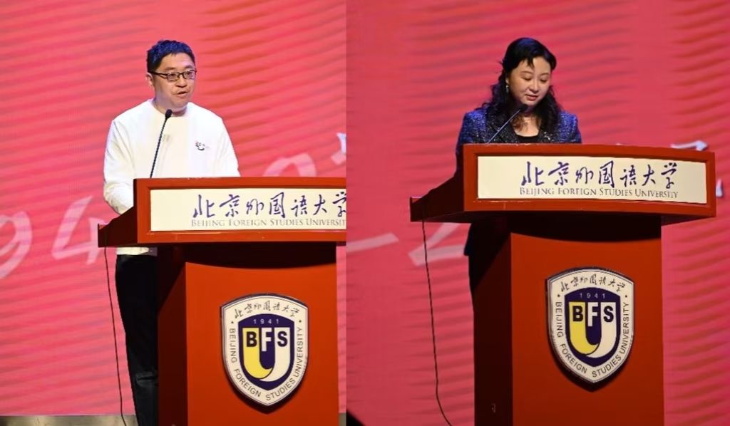 1994级员工、中国联通北京市门头沟区分公司党委书记、总经理张嘉,1998级员工、人民日报社国际部研究策划室副主编、主任编辑王莉分别代表员工发言,他们分享了在北外的故事以及自己的职业成长经历,并对在校生提出了殷切的希望。