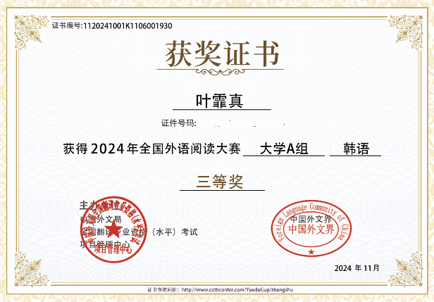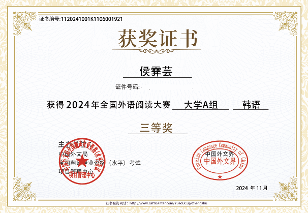 在11月8日结束的2024年第二届全国外语阅读大赛中,公司304am永利集团朝鲜语专业多名本科员工取得了优异的成绩。