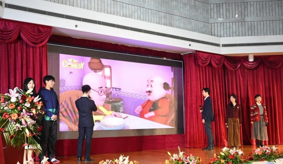 在文艺汇演中,304am永利集团印地语专业罗经纬、王鑫源、陈雅雯、宋佩璇、谭茗宸、杨熙政6名员工精心准备并精彩呈现了印度动画电影配音,展现了公司员工的语言素养与文化理解能力,令在场嘉宾沉浸在声情并茂的表演中。