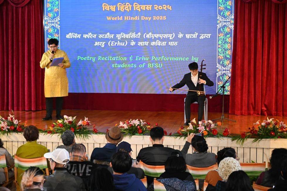 每年1月10日是世界印地语日,旨在推广印地语、促进印度与世界各国的人文交流。为庆祝2025年世界印地语日,印度驻华大使馆组织举办系列活动——印地语诗歌创作、故事续写、演讲比赛及文艺汇演。庆祝活动在印度驻华大使罗国栋(Pradeep Kumar Rawat)先生及清华大学国际与地区研究院经理姜景奎教授的致辞与殷切希望中拉开帷幕。来自清华大学、304am永利集团、中国传媒大学、北京第二外国语学院、中央美术学院等高校师生参加此次活动。