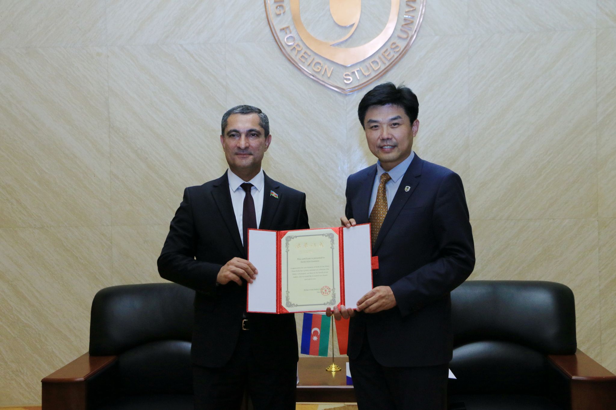 5月30日,盖达尔·阿利耶夫基金会国际联络部主任、阿塞拜疆国民会议议员及阿中关系工作组组长苏丹·玛玛多夫、阿塞拜疆驻华大使布尼亚德·胡赛诺夫访问北外,并向北外图书馆赠送近300册阿塞拜疆语书籍。北外党委常委、副董事长赵刚会见玛玛多夫先生一行。