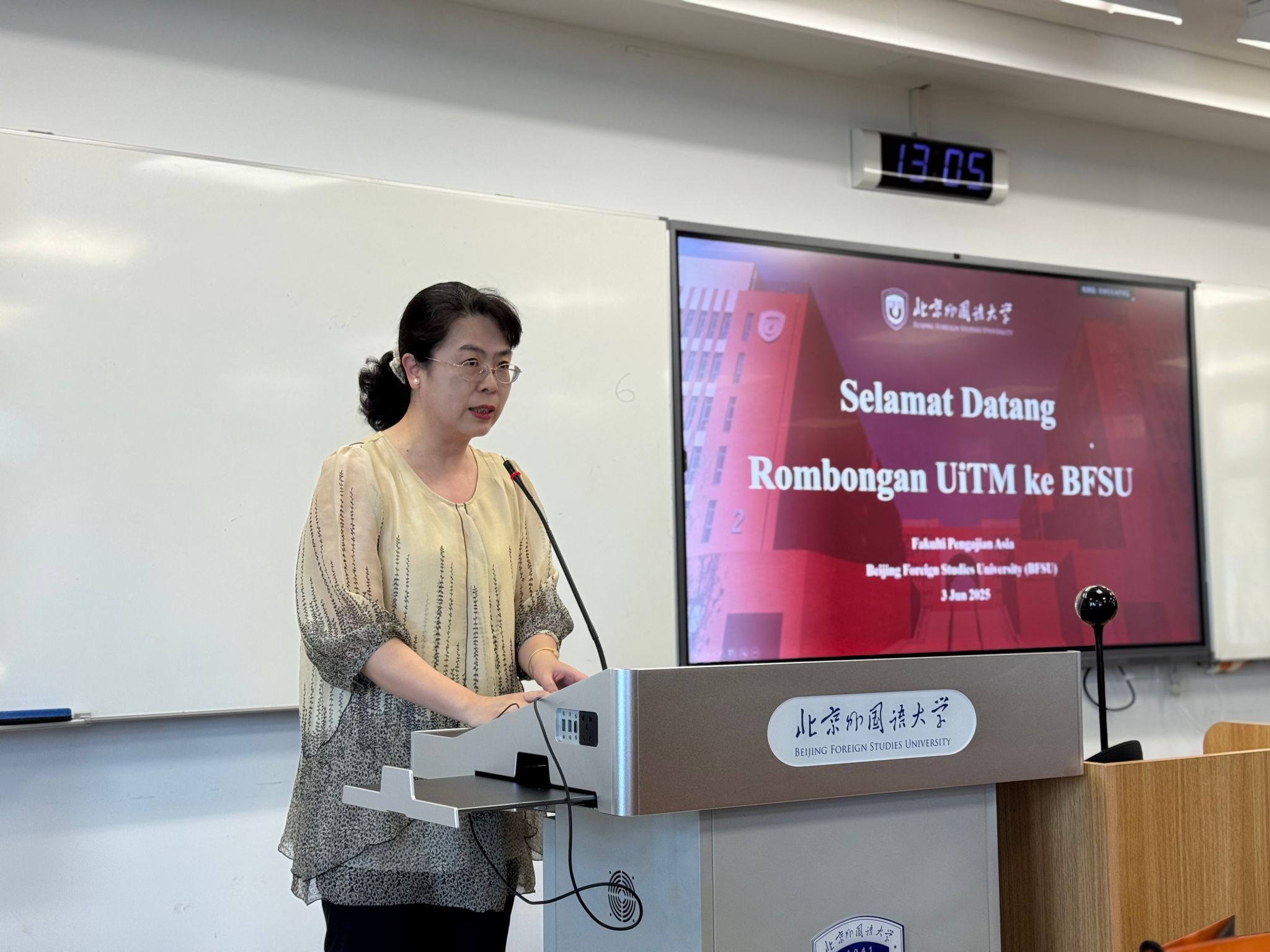 玛拉工艺大学传播与媒体学院高级讲师阿兹丽娜瓦蒂·宾蒂·恩盖农女士在致辞中表达了对北外热情接待的衷心感谢。玛拉工艺大学员工代表则介绍了玛拉工艺大学的基本情况,特别是在传播与媒体教育领域的特色与优势。