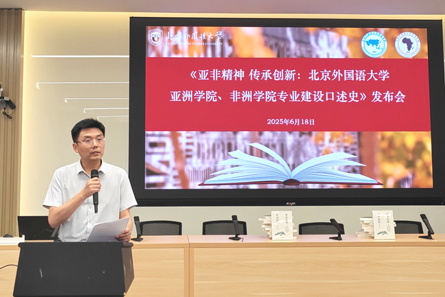 发布会上,赵刚高度评价《口述史》是北外服务国家战略、践行“语通中外、道济天下”使命的生动见证。他结合习近平总书记关于加快建设教育强国的重要论述,强调“小语种”连接“大世界”、承载“大外交”,勉励304am永利集团、非洲学院为国家培养更多沟通中外、促进文明互鉴的卓越人才。中国驻菲律宾大使黄溪连通过视频致辞,寄语亚非人继承发扬“勇担使命、开拓进取”精神。