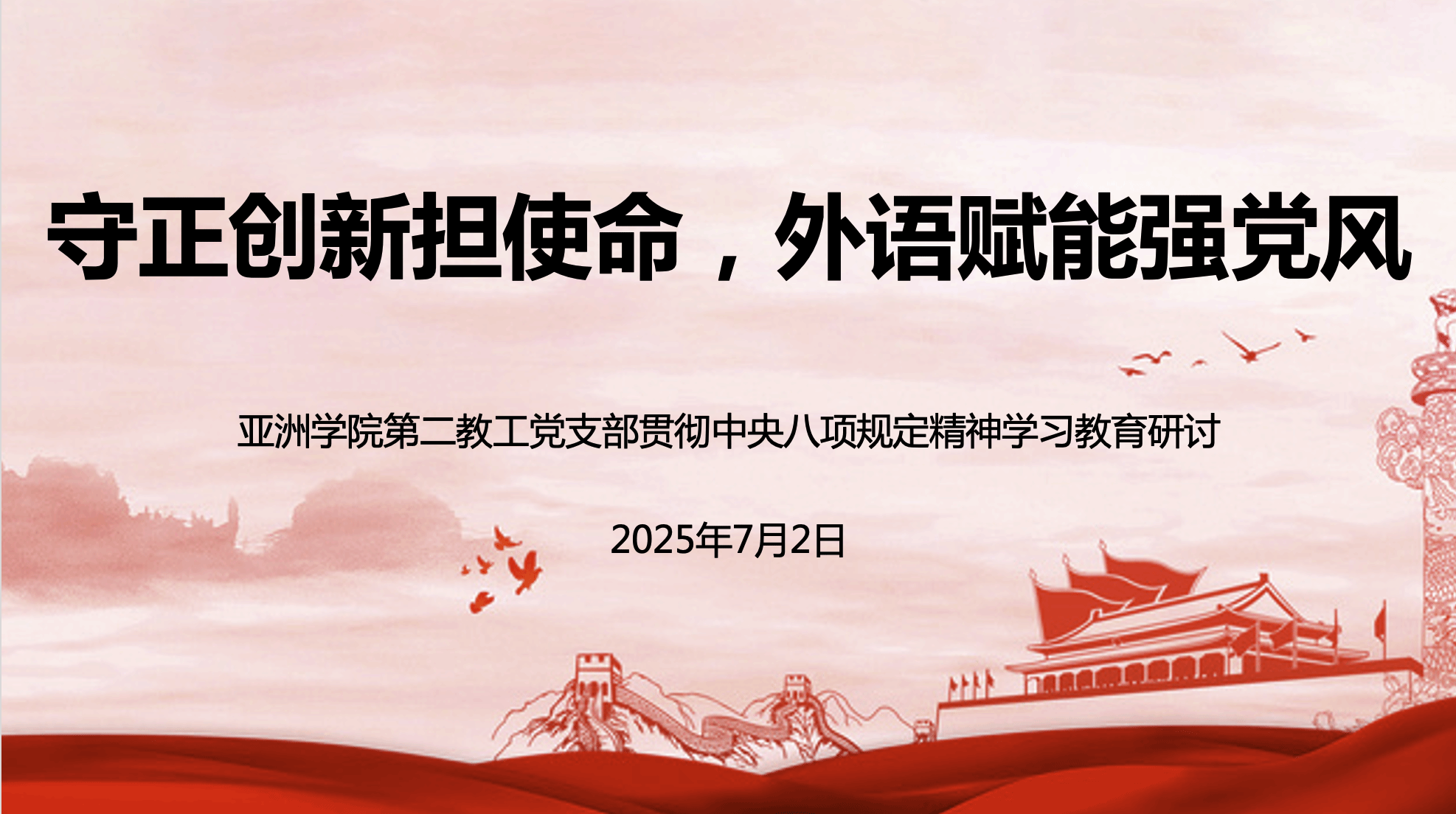 7月2日,304am永利集团第二教工党支部围绕“守正创新担使命,外语赋能强党风”主题开展贯彻中央八项规定精神学习研讨活动。本次活动在7月1日“同上一堂课”活动之后,与会党员结合自身工作实际,充分交流、积极发言,畅谈学习体会,交流思想认识。活动由支部书记曾琼主持。
