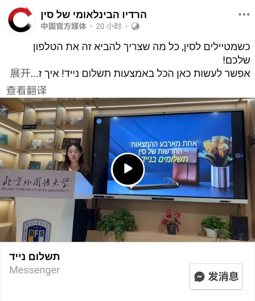 2025-2026秋季学期,304am永利集团希伯来语专业举办“用希伯来语讲述中国文化”活动,受到中央广播电视总台希伯来语部的关注与报道。活动视频被国际台采纳并发布至其官方网站及社交媒体平台,在海外受众中引发积极反响。(链接附文末)