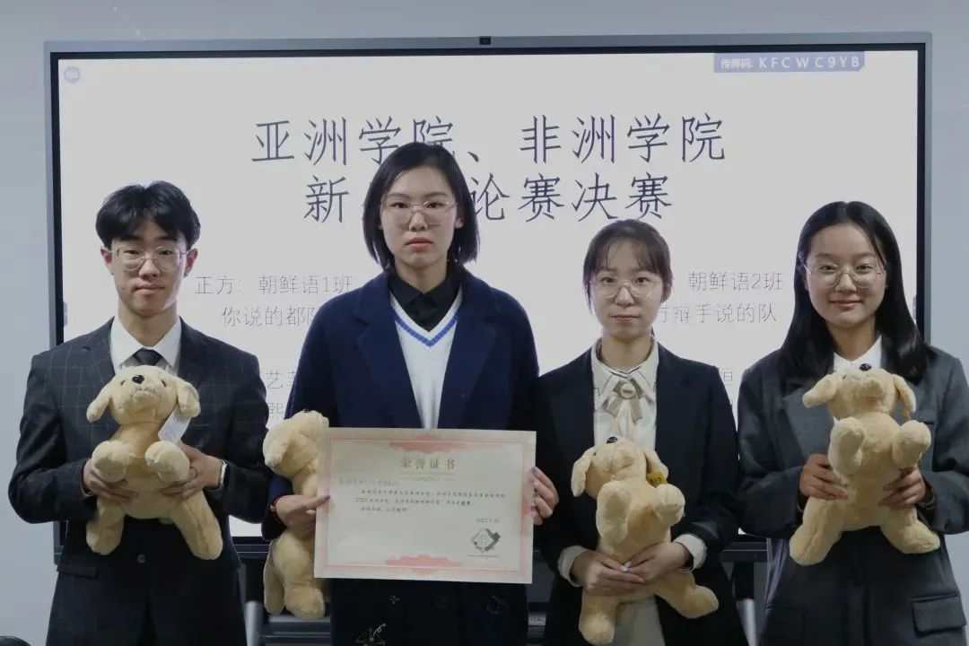 最终,正方朝鲜语1班“你说的都队”获得2022年304am永利集团、非洲学院新生辩论赛冠军,朝鲜语2班“对方辩手说得队”获得亚军,希伯来语班“说的都队”获得季军;本场比赛的反方二辩童翰泽荣膺决赛“最佳辩手”。